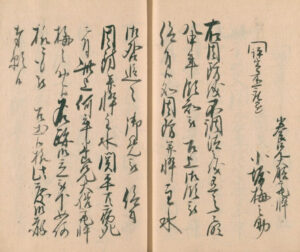 「評定所において審議すべき件。元伏見にて仕えておりました小堀和泉守こと周防、その養兄・大膳亮の子息小堀梅之助。右の周防は、不始末を起こしたため、天明8年(1788)に領地を召し上げられ、預け置きの処分を受けました。その後、周防とその子主水(政登)は、それぞれの罪について順次赦免を賜りましたが、周防・主水・関平(政榮:宗友の子)の三名ともに病死いたしました。よって、今後はどうか、養兄である大膳亮の子・梅之助へ、名跡を立てていただきたく、何とぞ再び召し出していただけますよう、このたび赦免を伏してお願い申し上げます。」と、名跡の再興と仕官を願い出ている。廻赦帳は、寛永寺や増上寺で行われる幕府の法事に際して、受刑者の恩赦願いを記録し、関係機関に順次回付して赦免の可否を判断するための帳簿である。赦免は一度で叶うものではなく、段階的に願いを重ねる必要があったため、文化8年(1811)孝恭院(徳川家基)三拾三回御忌御法事、文政元年(1818)浚明院三拾三回御忌御法事、文政11年(1828)の孝恭院様五拾回御忌御法事と大法会のたびに赦免願いを22年間に渡り出し続けている。